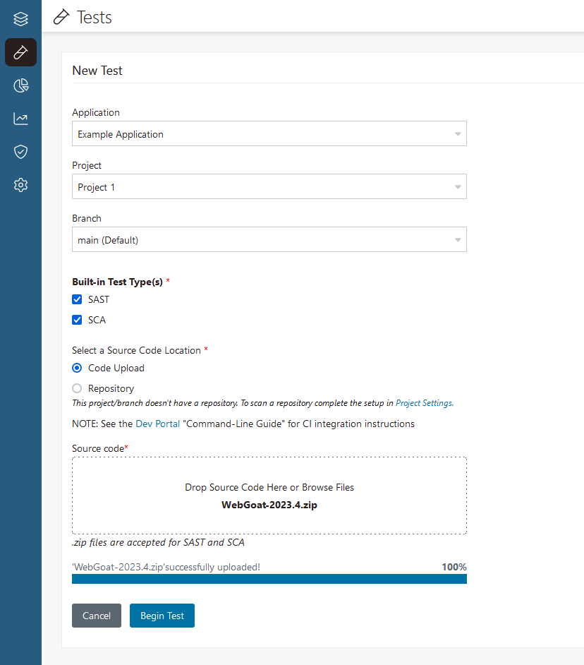Follow these steps to run SAST and/or SCA tests from the Polaris user interface: